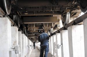 检查完车内,他们沿着车下深近两米的沟槽缓缓前行,列车底部,是密密麻麻的各种设备,电筒光束打在设备上,一丝一毫的异样都不能被放过,仅制动、牵引等重要部件就有100多个检查项目。