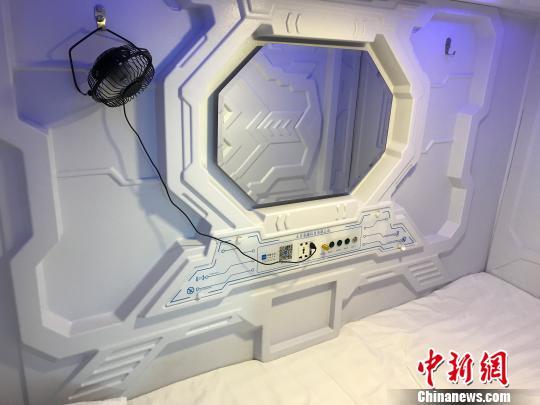 林瑶为前来采访的记者打开了一个舱门,记者看到,睡眠舱内部铺着白色的床单和枕头,没有毯子,整体风格与太空舱内部相似,舱内并无空调,仅有一个小型风扇可以运行。舱壁左边的镜子下有充电口与调节灯光的按钮,灯光分“阅读灯”、“太空蓝”两种。记者躺进睡眠舱后,感觉到整体空间比较宽敞,并不拥挤,但整个舱体内充斥着一股异味。