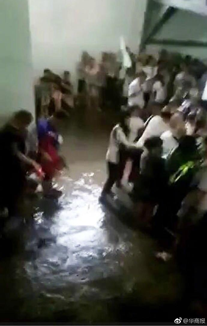 华商报记者看到现场拍的一段视频:哗啦啦的水顺着台阶流进来,游客挤成一堆,都站在没过脚背的积水里,还有人喊:“看,1号坑快被水淹了。”