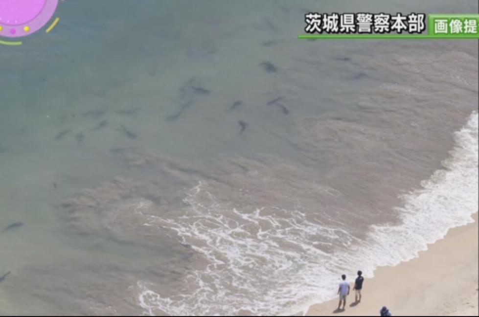 当地时间19日上午10时左右,茨城县警方接到久慈浜海水浴场有鲨鱼出没的报警,警方所属的直升机随即飞抵上空调查,发现大约有30条体长1米左右的鲨鱼在海滩附近游泳。