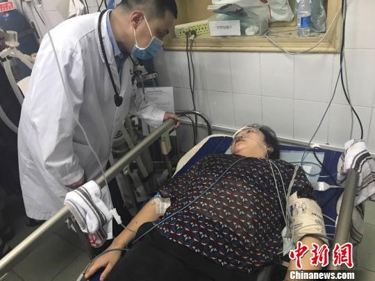 图为:受伤人员正在医院接受治疗。 胡哲斐 摄