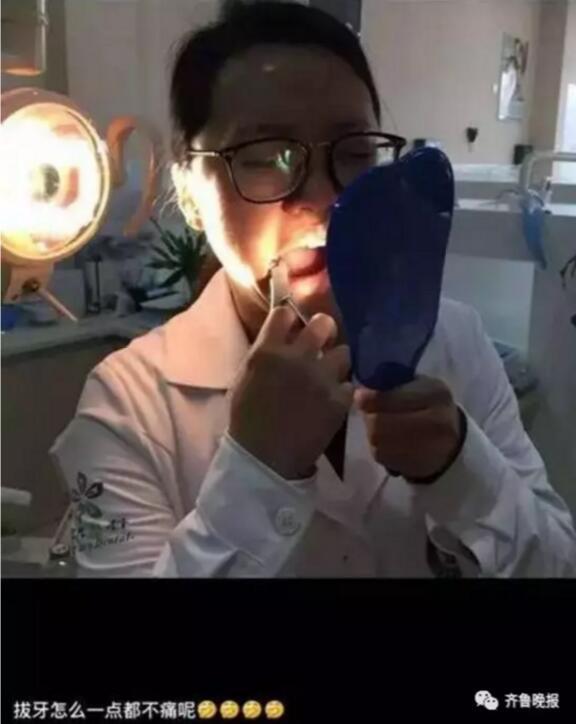 2016年3月,浙江平湖市某口腔诊所的牙医王丽萍就给自己拔了牙,事后发朋友圈配文:拔牙怎么一点都不痛呢。