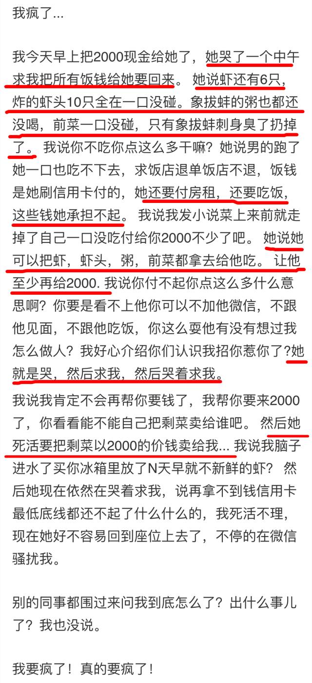本以为女同事拿了这2000块,事情也就结束了,可没想到