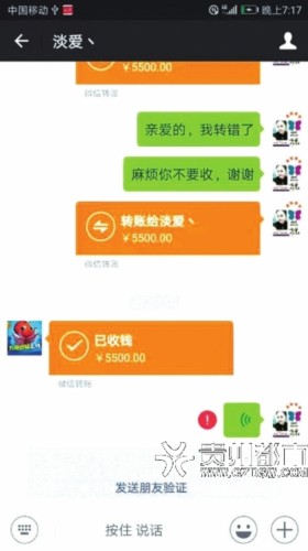 过了几分钟,郭女士查看聊天记录时傻眼了,这5500元并没有转给装修公司的工作人员,而是转给了一个不熟悉的微信好友,这个微信好友的微信名与要转账的人微信名很相似,叫“淡爱”,所以她一时疏忽转错了。