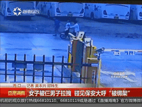 保安王先生说,那名女子说有人绑架她。监控视频显示,23号早上5点54分左右,小区保安岗前,三名男子和一名女子,骑着两辆电动车停在路旁,其中一名男子不断拽拉这名女子的手,之后这名女子称自己被绑架,向保安王先生求助。