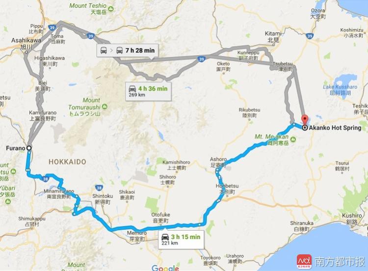 富良野距离阿寒湖221公里,无论何种方式,都需要数个小时