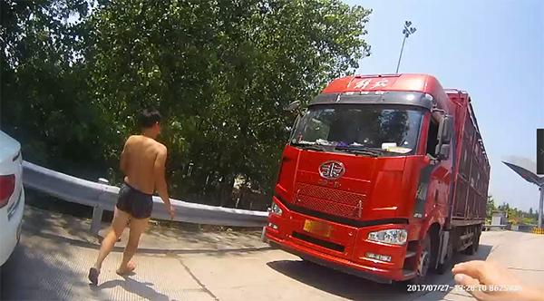 7月27日,湖北仙桃一男子在同伴将车停在高速应急车道接电话时,下车“方便”,同伴没注意,开车拉着一车猪跑了,只穿着裤衩的男子狂奔在高速上,随后无奈向民警求助。29日,湖北省公安厅交警总队高速公路支队仙桃大队负责人告诉澎湃新闻,民警及时帮男子联系上驾驶员,并对驾驶员在高速公路上随意停车进行批评。