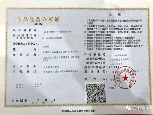 静安区市场监管局8月3日初步调查显示:上海摄来餐饮管理有限公司吴江路分公司持有有效营业执照和餐饮服务许可证(统一社会信用编码91310000332365655H)。静安区市场监督管理局已要求该公司总部提供进货台账、检验检疫证明、供货商资质等资料,在公司总部未提供相关证明材料前,要求吴江路门店对同批次的五花肉暂停销售,全部封存留样,并进行抽样检验,以作进一步调查,一旦发现违法行为将依法查处。