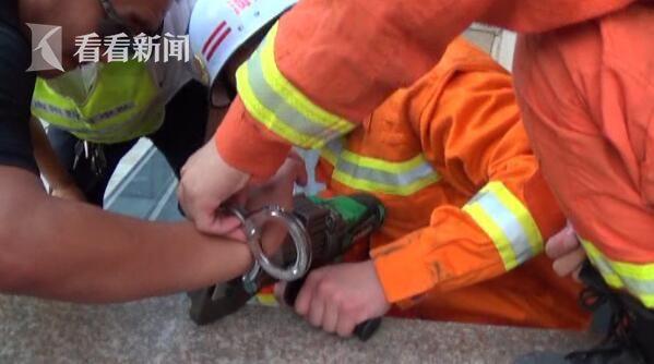经过15分钟努力,终于把手铐给剪开了,相信小伙以后再也不会没事玩手铐了。