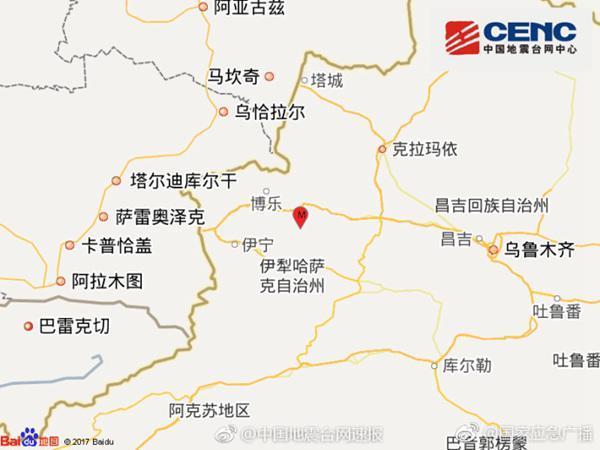 中国地震台网测定,8月9日7时27分,新疆博尔塔拉蒙古自治州精河县境内发生6.6级地震,震中位于精河县城西南约37公里的山区,震源深度11千米,乌鲁木齐、石河子、昌吉等地有震感,地震由库松木契克山前断裂活动造成。