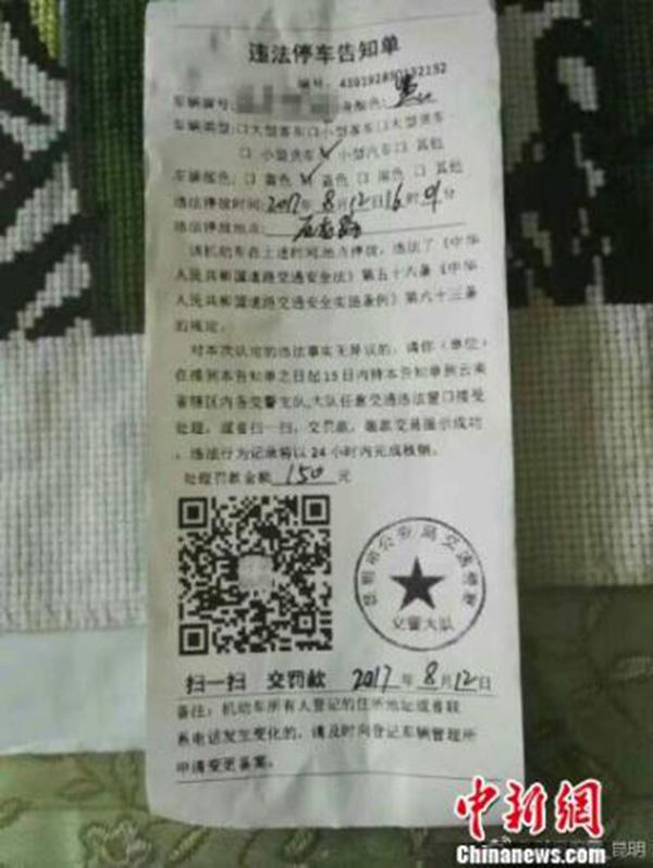 中新网昆明8月15日消息,近日,昆明街头出现印有二维码的《违法停车告知单》。昆明市公安局交警支队15日提醒交通参与者,如收到伪造《违法停车告知单》,请立即报警。