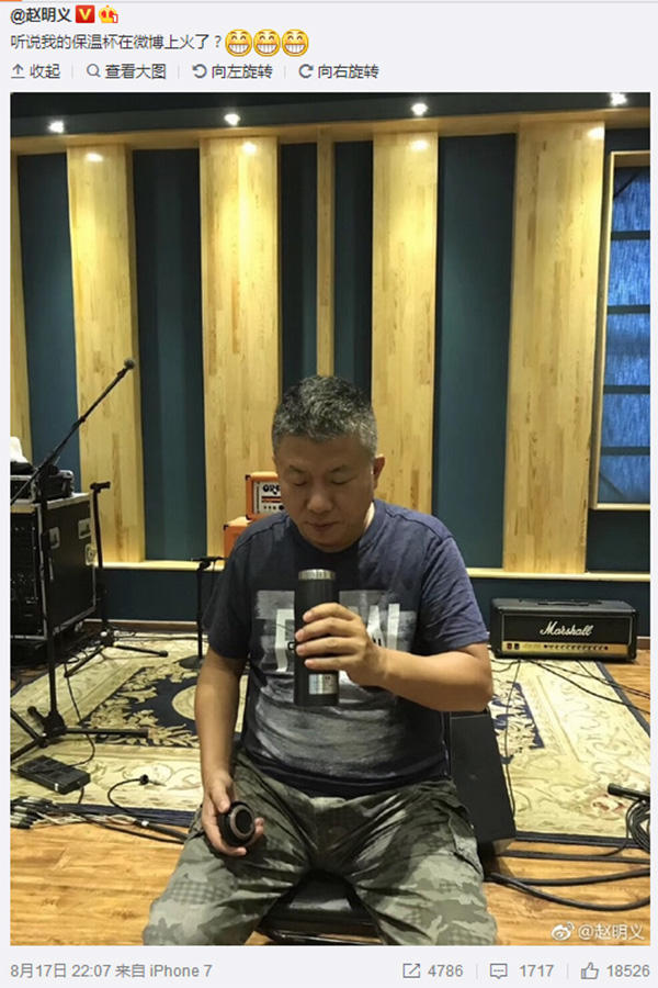 用来喝水的保温杯突然“火”了去,起源于网络上的一则爆料:黑豹乐队鼓手赵明义腆着发福的肚子,手握保温杯,里面泡着枸杞,被拍照的摄影师感慨:曾经的摇滚青年如今也走向了保健之路。