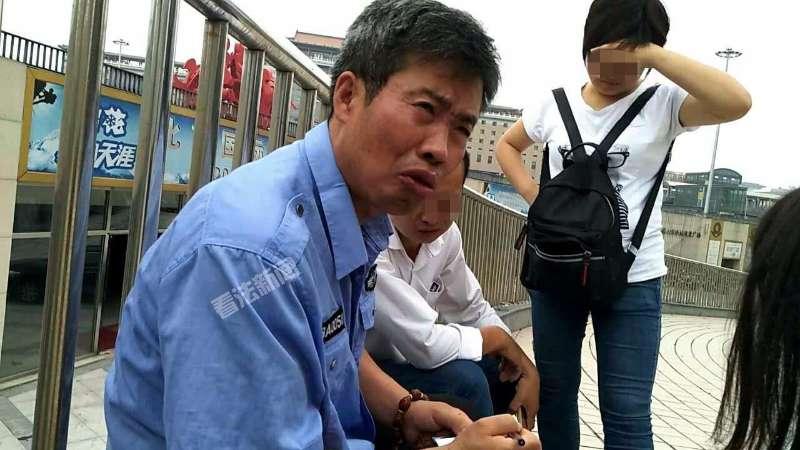 记者随着一男一女往南广场方向走去,两人边走边询问病情。很快,一名身穿保安制服的头发花白男子出现在视野中,一男一女立即向这名“保安”问路,“保安”则不辞辛苦,直接在前面引路,很快来到一个斜坡处。