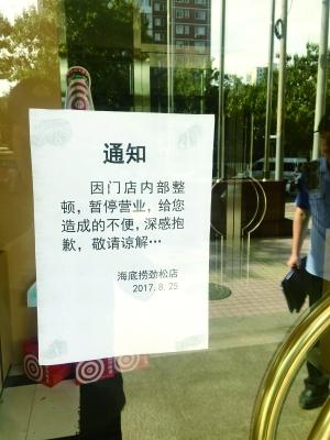 下午两点左右,记者又来到海底捞太阳宫店,店内虽有零星顾客,但门口工作人员已口头谢客,并赠送一些小礼物以示歉意。客户经理张磊说,得知消息后,集团领导已到店内了解情况,附近几个门店的负责人也均在场。据介绍,太阳宫店从上午10点40分后就已不再接待客人,中午还在营业的劲松店也在下午两点左右停止营业。“现在就餐的都是之前来的,我们也不能赶客人走”。