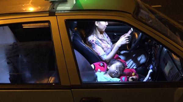 凌晨4点多,李少云还在出车,依依在车上睡着了。 澎湃新闻记者 朱莹 图
