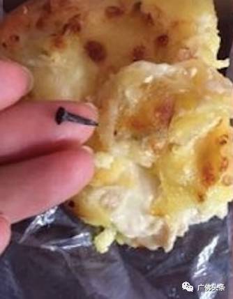 竟然在食用时咬出一枚长度约2厘米的铁钉!