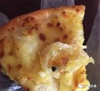 事发:女子吃披萨外卖时竟然咬出铁钉