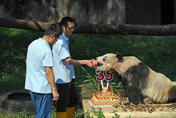 世界各地儿孙齐贺寿“新星,新星……”今天(16日)9:30,重庆动物园熊猫馆外,大熊猫新星饲养员罗宗礼站在离新星笼舍10米外的石梯上,呼喊大寿星。
