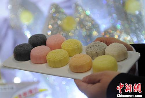 资料图:各式“冰皮月饼”。中新社记者 谭达明 摄