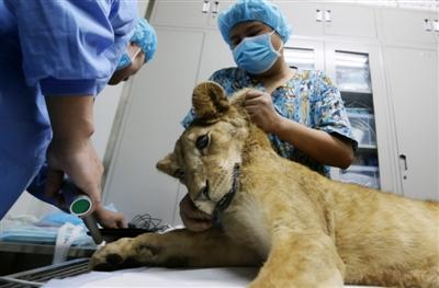 小狮子在准备间等待手术 摄影记者 刘海韵