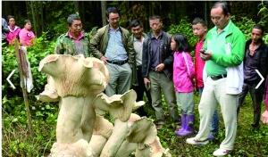 近日,云南腾冲市小罗绮坪村小组发现巨型“野生蘑菇王”后,引万人前往围观,甚至有游客向围栏内撒钱许愿祈福,此地俨然变成了“热门旅游景点”。记者了解到,这几株蘑菇,最高的达到83.5厘米,菌伞直径有40厘米,而菌杆也有20厘米左右,被当地村民戏称为“大象脚”。24日,因蘑菇已经有了萎缩的情况,当地林业部门迅速出动,将其带回制作标本保存,至于未来是否对外开放进行展览,还有待商榷。