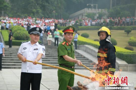 图为中越联合焚烧毒品活动现场 钟欣 摄