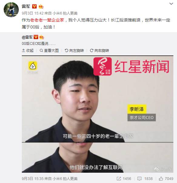 ▲雷军曾转发李昕泽的采访截图,自称“老老老一辈企业家” 网络截图