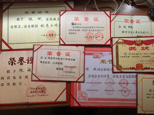 反扒35年来,张斌多次获得表彰。澎湃新闻记者 陈雷柱 图