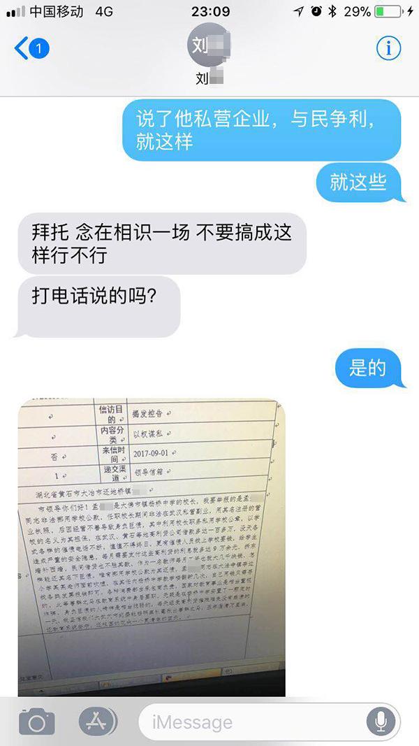 “纪委已经查过了,绝对是诬告。”至于自己为什么发恳求的短信,刘某称是因为“面子上肯定挂不住”,“正常人希望纪委查你么?就算没事也不希望惹上这个事”。当时她很生气,法律意识不强,加上李明套她的话,她就把举报信发给李明了,自己被全市通报,并被党内处分。