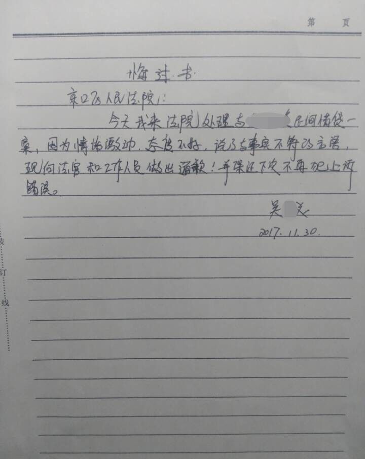 院方介绍,当天下午2点左右,这对母女来到法院执行局,在承办人丁某接待谈话过程中,“吴某美提出无理要求,被承办人拒绝,其情绪开始激动,对承办人进行指责、谩骂,并拉扯承办人衣服。承办人一直保持克制,要求吴某美控制情绪,但其不听劝阻,态度恶劣,本院拟决定对其采取司法拘留措施。因吴某美不配合,法警对其使用械具予以控制。使用械具后吴某美才慢慢冷静,承认错误,向承办人表示近期将积极履行还款义务。”
