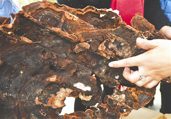 大菌子长在棺材板上重量超3斤