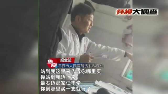 面对镜头姚其祥医生否认药商回扣的说法,汨罗市食品药品工商质量监督管理局也组织执法人员对医院门口的药店进行了排查,药店方承认,有药商跟皮肤科熊金波医生有联系。