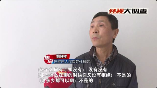 医生竟与药商联合高价卖药,赚取回扣。汨罗市人民医院和汨罗中医医院医生的“指定药店”行为被经视大调查曝光之后,汨罗市卫计局迅速介入,两家医院四名涉事医生被暂停职务,接受纪委调查。