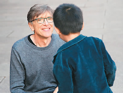 图为克里斯·马吉与南京大屠杀幸存者夏淑琴的曾外孙友好互动。