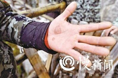 常常拉绳子,吴贵生的手磨烂了一大块。