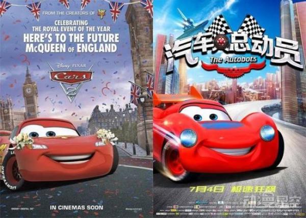 《赛车总动员》(左)与《汽车人总动员》(右)的海报。2015年7月,国产动画电影《汽车人总动员》在国内上映。然而,迪士尼公司、皮克斯却发现,这部电影从名称、动画形象到宣传海报,都涉嫌抄袭了《赛车总动员》系列电影。之后,迪士尼公司、皮克斯将该片的出品方蓝火焰公司、发行方基点公司及在网站上传播了该片的聚力公司诉至法院。