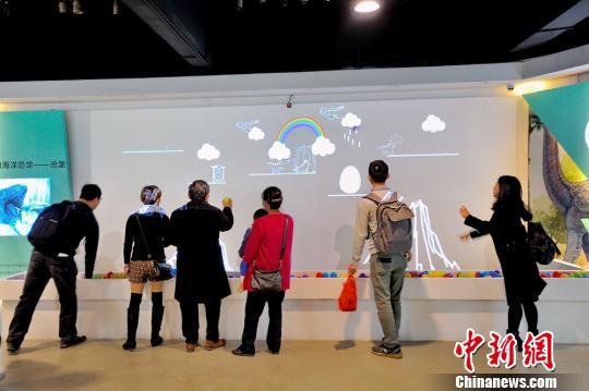 在VR动物园恐龙复活体验区,借助体感互动和投影技术,市民可以化身为神笔马良,通过涂鸦复活恐龙和帮助恐龙回家,了解到不同种类的恐龙习性。