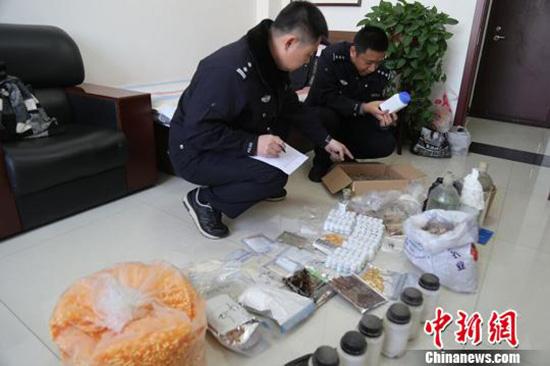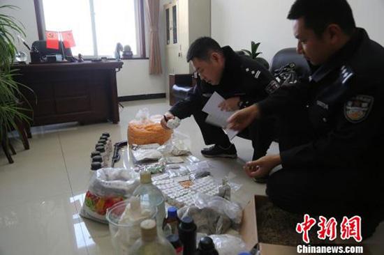 山西省吕梁市公安局成功破“2017.7.14”部督特大网络制贩毒案。警方供图中新网吕梁12月28日消息,山西省吕梁市公安局28日晚间发布消息,该局成功侦破“2017.7.14”部督特大网络制贩毒案,捣毁制毒加工厂3处,缴获各类毒品9.5公斤、100斤制毒原材料和大量制毒设备,抓获毒品犯罪嫌疑人13名。