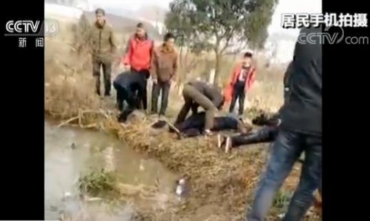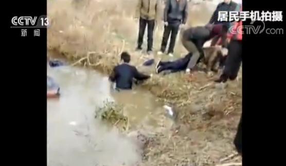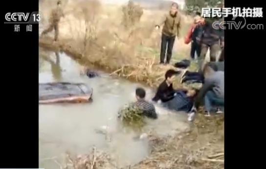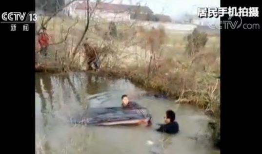 事故地点位于当地陈集小学附近的一处水塘中,居民手机拍摄的视频显示,面包车的车顶已经被水淹没一半,有两名年轻男子正在水中破窗救人。周围居民有的在帮忙救人,有的连忙拨打电话报警。