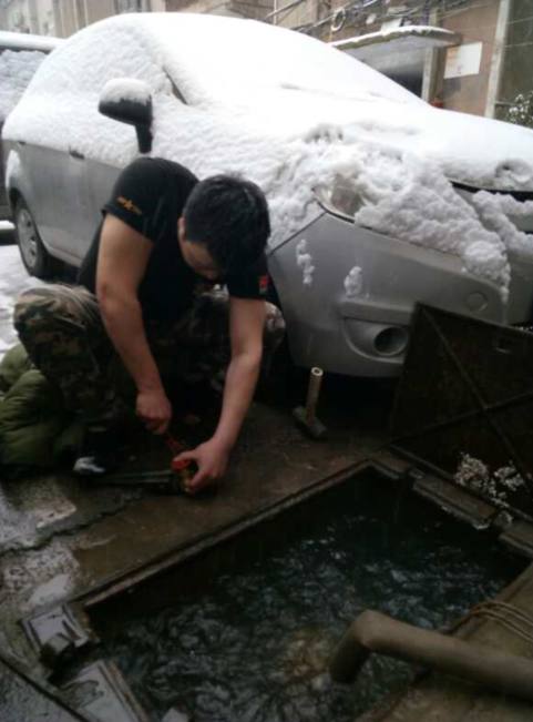 2018年1月4日,郑州大雪纷飞,早上7点多,市区丰乐路17号院的一处表井内,因井盖砸断水管,造成突发漏水。接到热线指令,郑州自来水公司营业处金水维修班张威赶到现场,紧急处置。因水势较大,抽水不及,同时也为了对周边市民用水不产生影响,张威甩掉衣服,带水抢修。