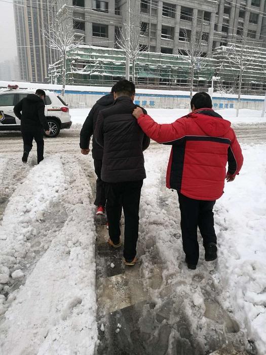 两人花了十多分钟才确定警车的方位。可是一方面要安全地控制住孙某,另一方面又要清理警车上的积雪和周边道路,这让抓捕组束手无策。就在二人决定一人看守孙某,一人清理积雪时,他们的境况被两名正铲雪的环卫工人发现了,主动上前问询情况。