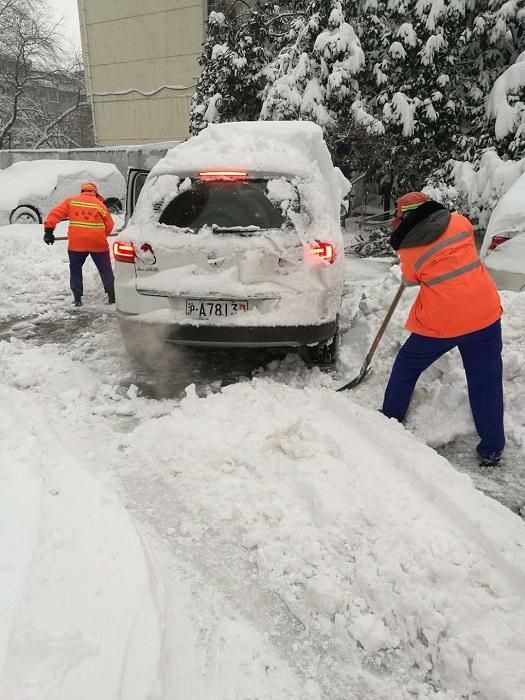 “我们是上海来的警察,到这边来出差,警车被雪盖住了,走不了。”在得知两人是从“那么远的地方”到此执行任务的公安民警后,环卫工人二话不说拿起工具优先过来帮忙清理积雪。