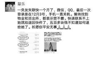 西安一女士网购后失联,商品退回给了卖家。山东青岛的卖家想找她退还货款,但一个月来怎么也找不到人,于是她上网求助,但更担心的是买家的安全。