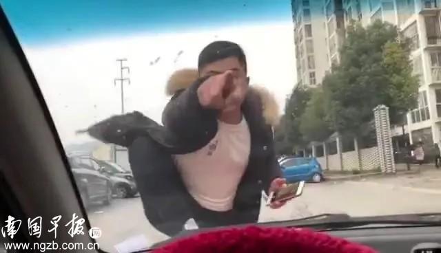 据了解,在网传的视频中,一名身穿黑色棉衣的男子一直围着车子走动,期间还不停地用柳州话骂着粗口,用拳头猛捶车窗,还将一只脚踩在引擎盖上指着车内谩骂。