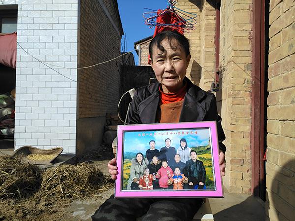 董龙认了亲生父母后,一家人拍了二十多年来的第一张合影,图为母亲李霞霞拿着一家人的合影。