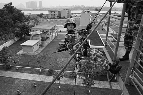 1、亚丁湾护航期间,宋玺进行军事训练。