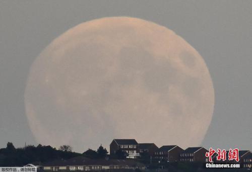 资料图:当地时间2015年9月27日,英国南部城市布莱顿,一轮巨大的“超级血月”当空悬挂。