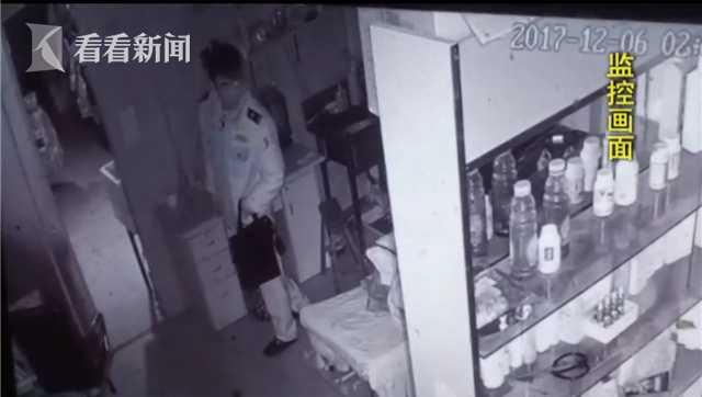 这是2017年12月6号,这家烟酒店里的监控视频,这名身着警服的男子在店里四处转悠,事后店主发现钱少了。