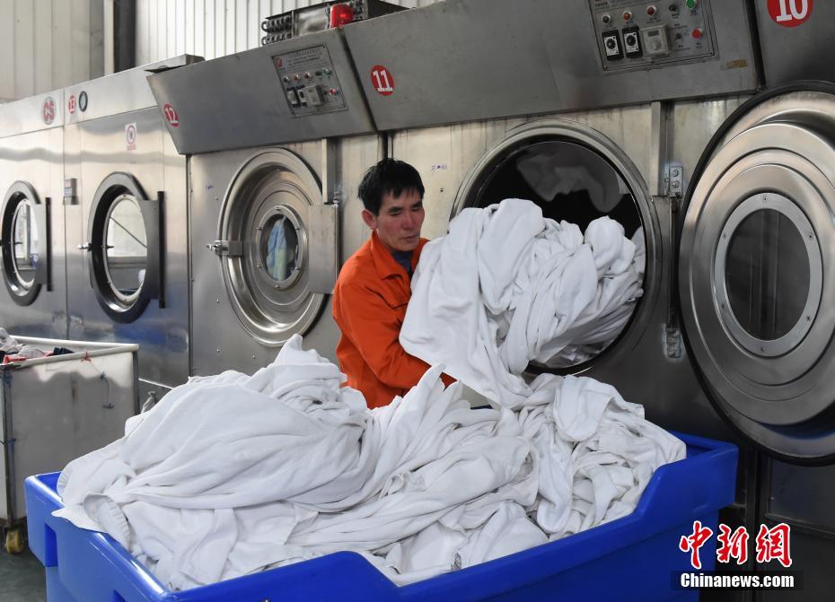 乘客在火车上休息时,总会或多或少担心卧铺床单、被子不干净。那么被单、被罩和枕套是如何消毒清洗的呢?2月6日,记者探访了春运重庆卧具洗涤车间,该洗涤车间担负着重庆火车站部分车次列车的卧具洗涤任务。图为工人将运到车间洗涤好的卧具从洗衣机中拿出分类。 周毅 摄
