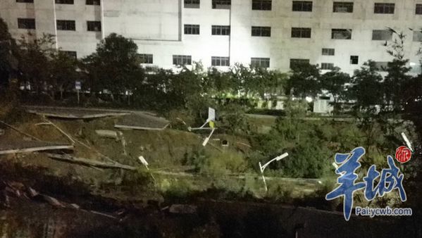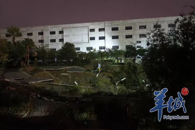 当晚11点,记者赶到现场发现,地陷路段发生在季华西路一环桥底至佛山国际卫浴城之间。记者在现场看到,地陷面积宽广,双向8车道的道路,连同道路中间的隔离带,以及北边人行道均发生塌陷。地陷面积约有2个篮球场大,地陷深度起码6-7米,沥青路段大块脱落,地下管道和路灯全部掉入坑中。